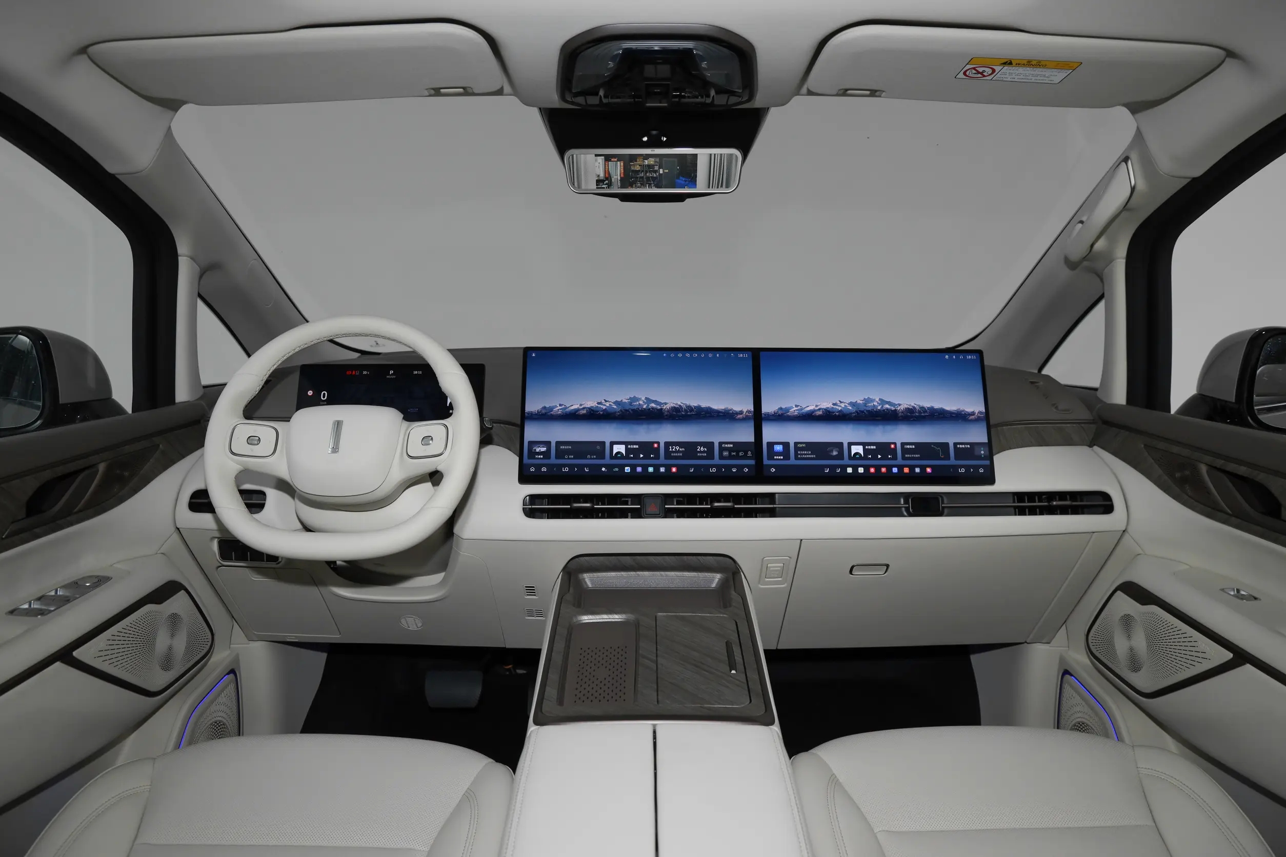 中控台的科技感很强烈。多功能方向盘虽说是皮质材料的,但手感很细腻,摸上去很有质感,打开加热功能之后没一会儿就热乎乎的,冬天用来暖手挺合适的。除此之外,还有12.3英寸的全液晶仪表盘、26英寸的HUD投影、15.6英寸的中控屏和副驾驶娱乐屏,第二排还有一块17.3英寸的后排屏幕。这个配置在同价位车型中真的非常顶,五屏联动别提有多震撼了。贴心的照顾到了前后排的朋友们,带娃出行给他们播放动画片,妥妥的哄娃神器。需要更新车机系统的时候可以直接使用OTA升级,一年有四次升级机会,再也不用专门花时间跑到4S店了。